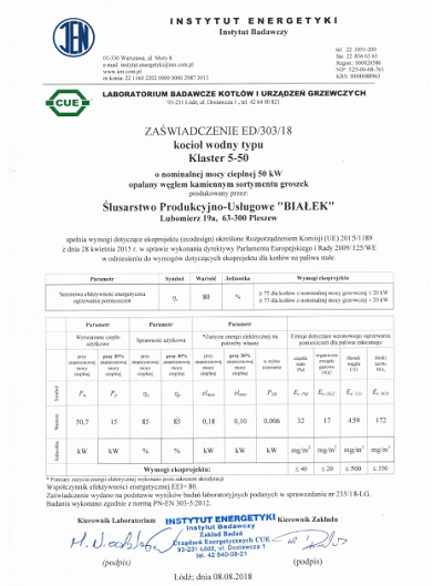RODZAJ PALIWA: ekogroszek (węgiel kamienny kl.Ia sort.Gr I)