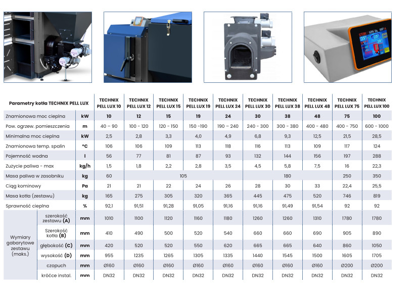 Kotły typu ”TECHNIX PELL LUX” to nowa generacja kotłów o wysokim europejskim standardzie z automatycznym podawaniem paliwa. Kocioł przeznaczony do spalania biomasy drzewnej tzw. pellet z automatyczną zapalarką. Wprowadzenie nowych rozwiązań konstrukcyjnych w układzie komory spalania i wymiennika ciepła powoduje efektywne i ekologiczne spalanie zgodne z wymaganiami EN 303-5 i Ecodesingu (Ekoprojekt).